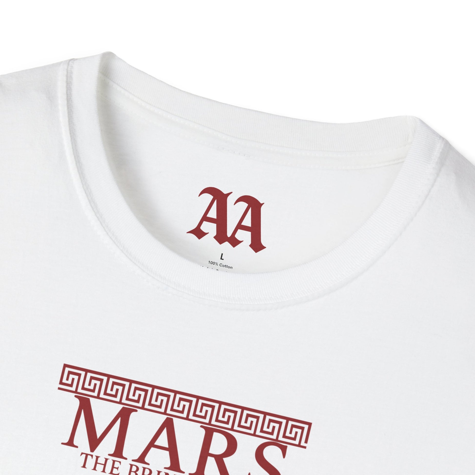 Wear a shirt depicting the opening movement from Holst's The Planets. The design includes the relentless chromatic 5/4 theme perfect for anyone who likes their classical with a dose of adrenaline and recognizable to all musicians. The shirt also features various symbols associated with the Roman god of war.