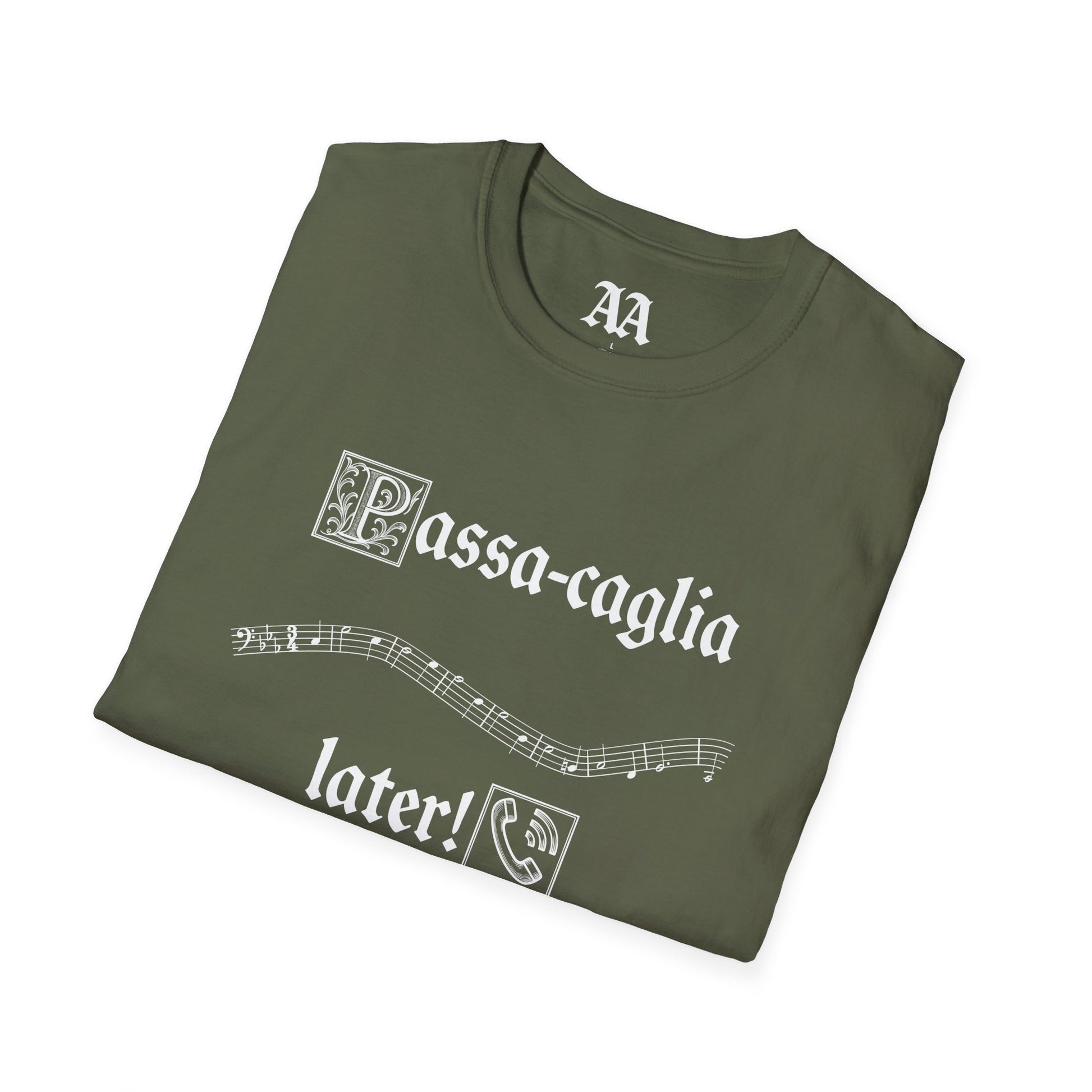 Pass-a-call-ya later! This puny shirt displays the bassline from Bach’s famous C-minor passacaglia. Perfect gift for lovers of baroque forms, Bach, or even organists!